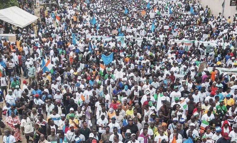 الآلاف من أنصار المعارضة الإيفوارية، يحتجون على ترشح الرئيس الحسن واتارا لفترة رئاسية رابعة،