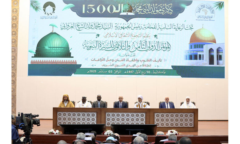 أشرف فخامة رئيس الجمهورية، السيد محمد ولد الشيخ الغزواني، اليوم الأربعاء بالمركز الدولي للمؤتمرات – المختار ولد داداه، على افتتاح أعمال المؤتمر الدولي الـ 38 للسيرة النبوية العطرة، المنظم هذه السنة تحت شعار “تأليف القلوب وإطفاء الفتن وحل النزاعات انطلاقا من الهدي النبوي الشريف”.