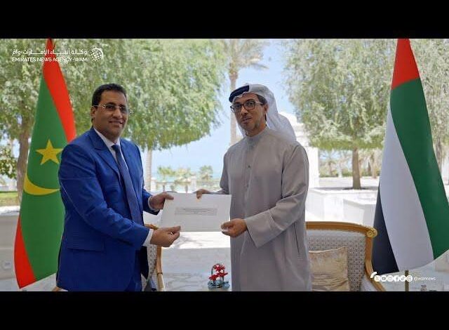 سلم صاحب المعالي الوزير الأول السيد المختار ولد اجاي اليوم رسالة خطية من فخامة رئيس الجمهورية السيد محمد ولد الشيخ الغزواني إلى أخيه صاحب السمو الشيخ محمد بن زايد آل نهيان رئيس دولة الإمارات العربية المتحدة الشقيقة، تتصل بالعلاقات الثنائية بين البلدين وسبل تعزيز التعاون المشترك.