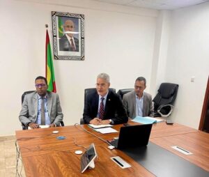 أجرى معالي الوزير السيد سيد أحمد ولد ابوه اليوم الاربعاء في مكتبه بنواكشوط، مباحثات عبر تقنية الفيديو مع المدير العام للمنظمة الإسلامية للامن الغذائي باريك ارين