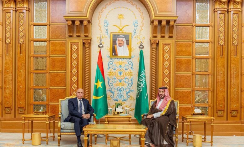 رئيس الجمهورية، السيد محمد ولد الشيخ الغزواني، يلتقي في الرياض بصاحب السمو الملكي الأمير محمد بن سلمان بن عبد العزيز آل سعود، ولي عهد المملكة العربية السعودية، رئيس مجلس الوزراء.