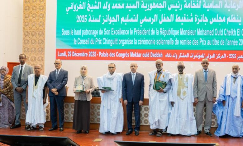 أشرف رئيس الجمهورية، السيد محمد ولد الشيخ الغزواني، اليوم الاثنين بالمركز الدولي للمؤتمرات “المختار ولد داداه”، على حفل توزيع جوائز شنقيط للعام 2025.