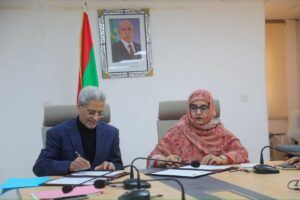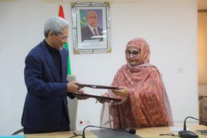 أشرفت وزيرة البيئة والتنمية المستدامة، مسعودة بنت بحام محمد لغظف، صباح الجمعة، على توقيع اتفاقية شراكة بين وزارة البيئة والتنمية المستدامة والهلال الأحمر الموريتاني، ممثَّلًا برئيسه الأستاذ بولاه شيغالي موگيّه، وذلك بحضور أطر الوزارة وعدد من المسؤولين والشركاء.