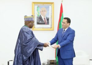 استقبل الوزير الأول السيد المختار ولد اجاي اليوم الثلاثاء السيد عبد الرزاق كِي كامبوكو، الأمين العام لحكومة جمهورية الغابون، ليستلم منه رسالة من الرئيس الغابوني السيد ابريس اكلوتير أوليكي انغويما لأخيه فخامة رئيس الجمهورية السيد محمد ولد الشيخ الغزواني.