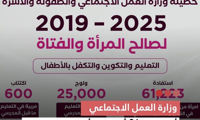 وزارة العمل الاجتماعي أكثر من 61 ألف امرأة استفدن من برامج التكفل والتعليم مافبل المدارسي لأطفالهن بين 2019 2025