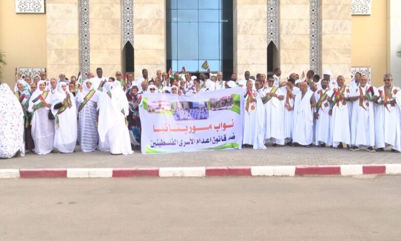 نظم أعضاء الجمعية الوطنية (البرلمان الموريتاني) مساء أمس الأربعاء وقفة احتجاجية أمام مقر البرلمان في نواكشوط للتنديد بالقانون الذي أقره الكنيست الإسرائيلي والقاضي بإعدام الأسرى الفلسطينيين.