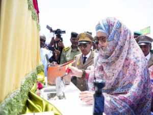 أشرفت وزيرة التجارة والسياحة، زينب بنت أحمدناه، رفقة والي الترارزة أحمدن ولد سيد أب، اليوم السبت، في بلدية أنجاكو بمقاطعة كرمسين، على وضع حجر الأساس لمنتجع أنجاكو السياحي، الذي يُعد من المشاريع الوطنية الهادفة إلى تطوير القطاع السياحي.